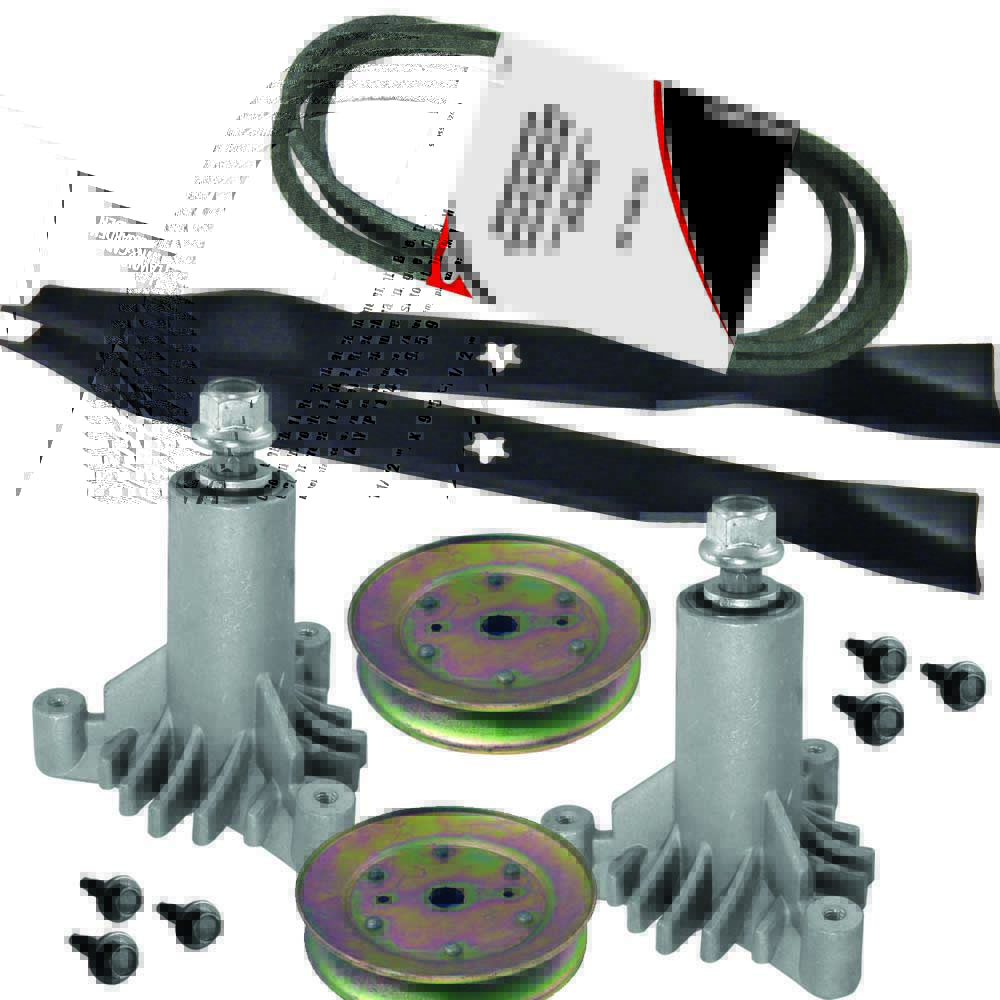 Replaces: Spindle Assembly (AYP 130794); Spindle Pulley (AYP 129861); Blade (AYP 134149 mulcher) & Belt (AYP 144959) Includes hardware