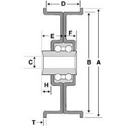 (A) 3-3/16" (B) 2-3/4" (C) 1/2" (D) 7/8" (E) .230" (F) .230" (H) n/a (T) 0.050"