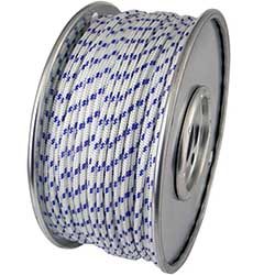 The blue tracer in the starter rope is a manufacturing feature indicating the rope's high quality, strength, and durability. It's a thin, coloured thread woven into the outer braid that helps identify a high-performance rope, ensuring it has superior wear resistance and a longer service life.