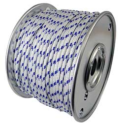 The blue tracer in the starter rope is a manufacturing feature indicating the rope's high quality, strength, and durability. It's a thin, coloured thread woven into the outer braid that helps identify a high-performance rope, ensuring it has superior wear resistance and a longer service life.