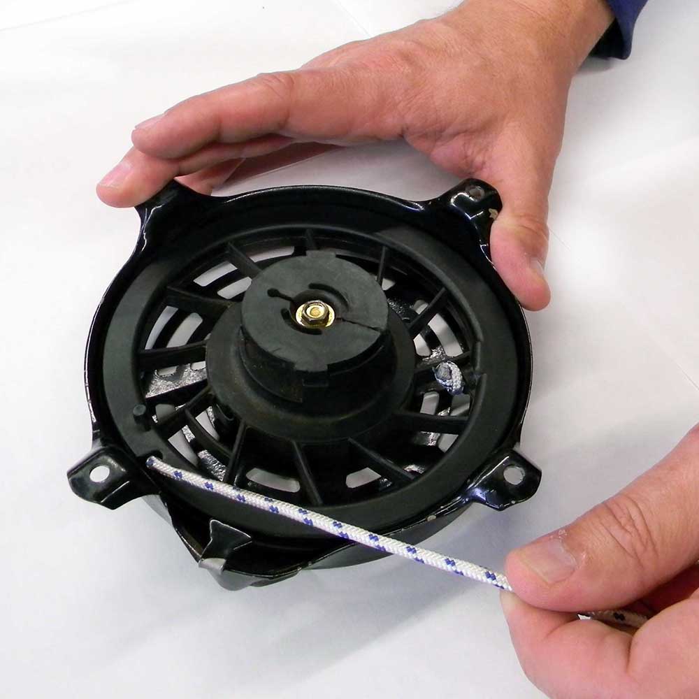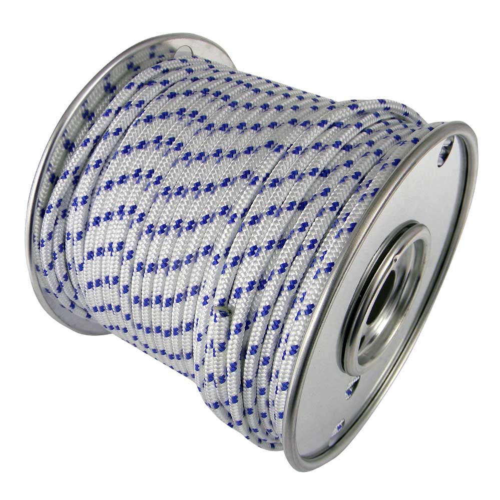 The blue tracer in the starter rope is a manufacturing feature indicating the rope's high quality, strength, and durability. It's a thin, coloured thread woven into the outer braid that helps identify a high-performance rope, ensuring it has superior wear resistance and a longer service life.
